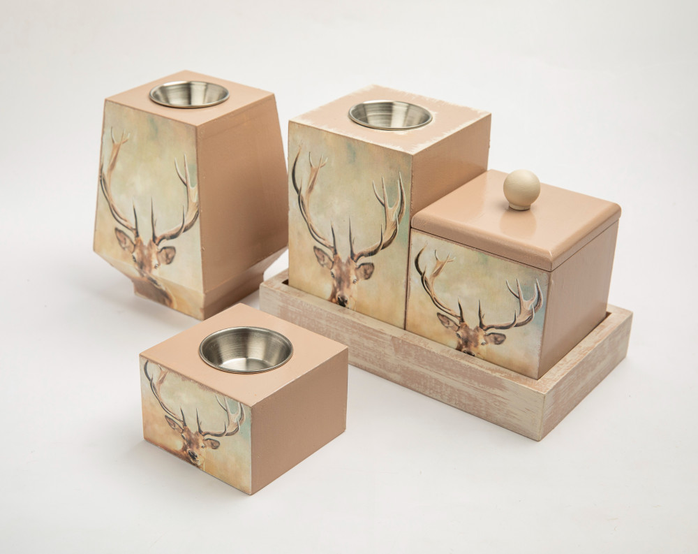 طقم مباخر 5 قطع ديكوباج برسمة الوعل