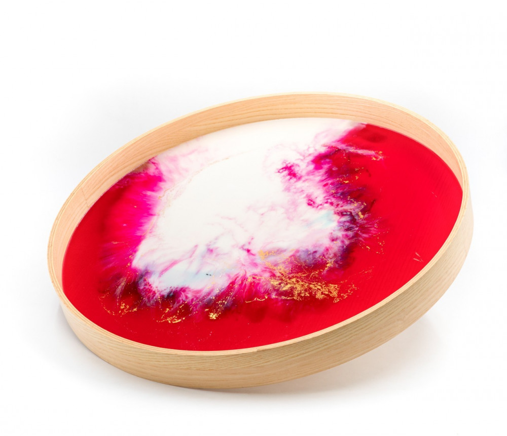 صينية تقديم دائرية بفن الرزن.