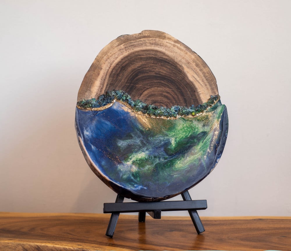 كوكيز من الخشب الطبيعي والرزن عمل الفنانة : نوال الباهليالقطر : 33 سمملاحظة :القطعة تباع بدون القاعدة