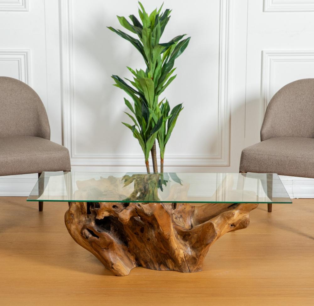 تُعد هذه الطاولة المركزية المصنوعة من خشب التيك الطبيعي مع سطح زجاجي فاخر، رمزًا للأناقة والحرفية الراقية.