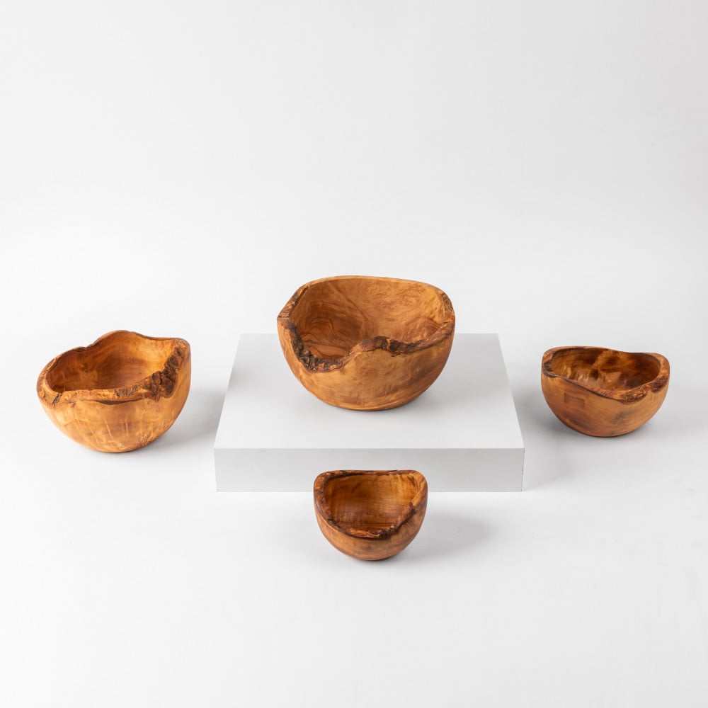 وعاء عشوائي بأحجام مختلفة من خشب الزيتون الطبيعي